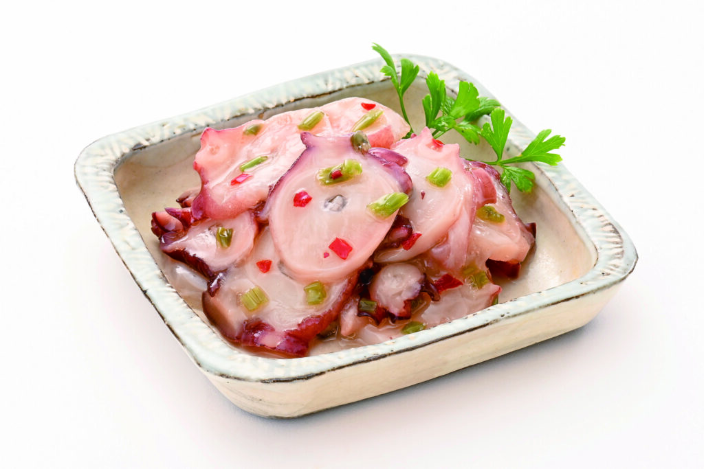 近海産のたこをピリッと辛いわさび味に仕上げました。